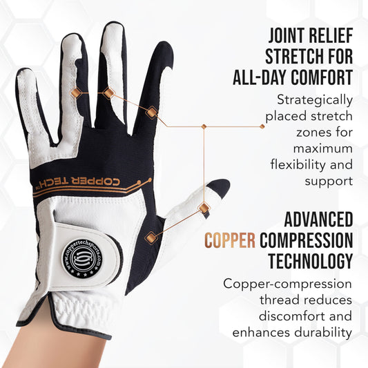 Copper Tech Women's Golf Gloves 2 Pack (White/Black)