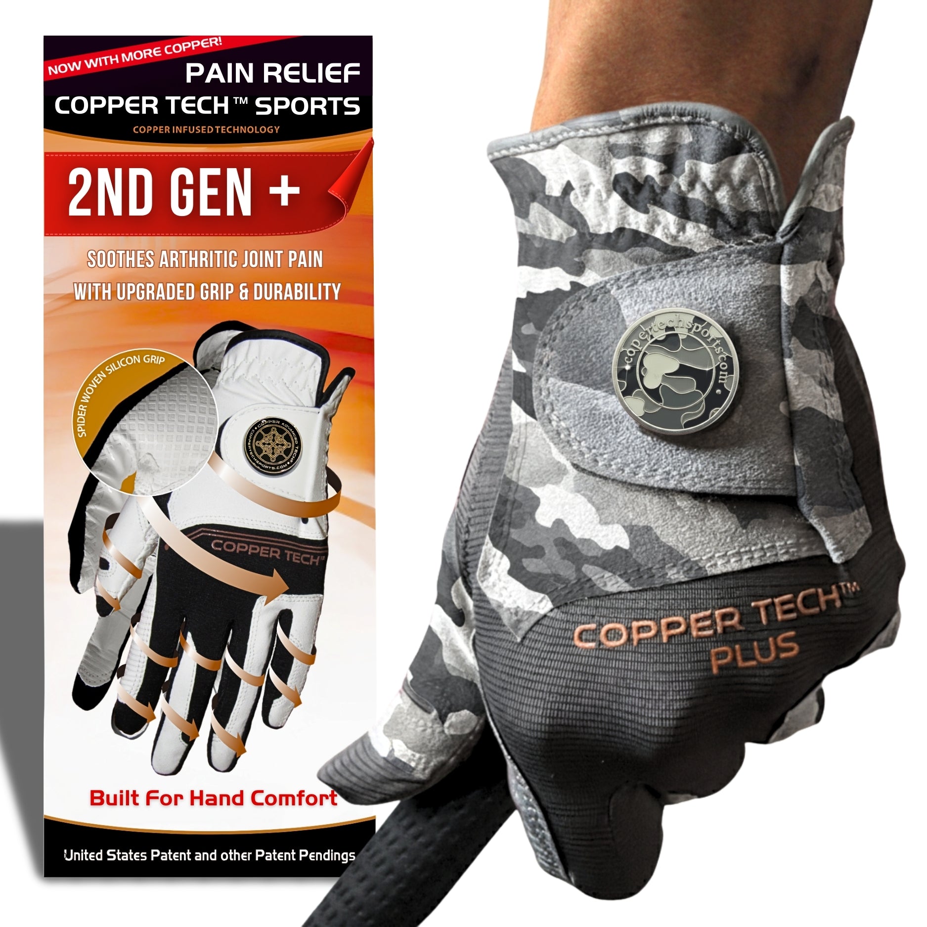 Blend comfort with confidence on the course. The Camouflage Edition of our Copper Tech Plus glove combines tactical style with targeted support for your hands and joints.