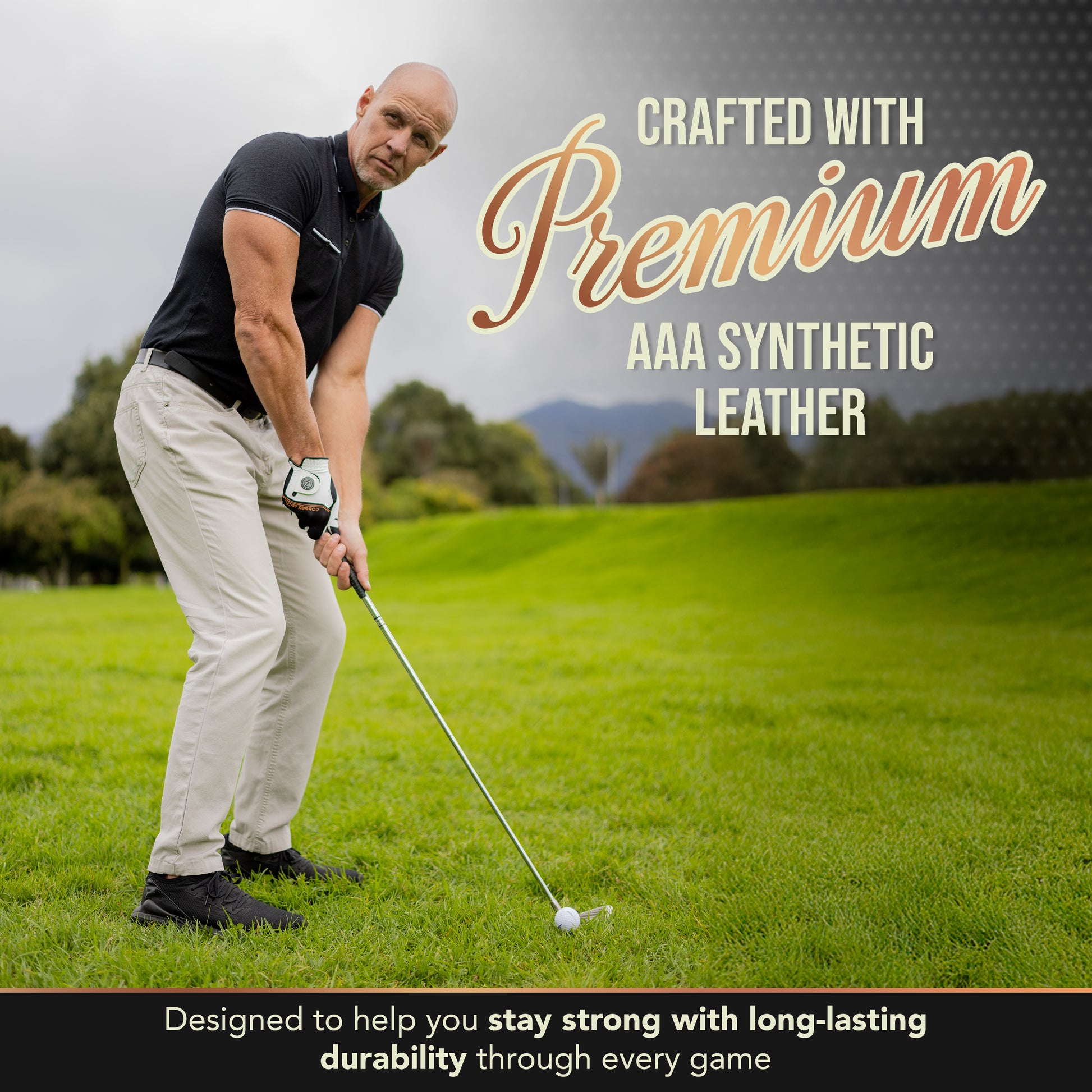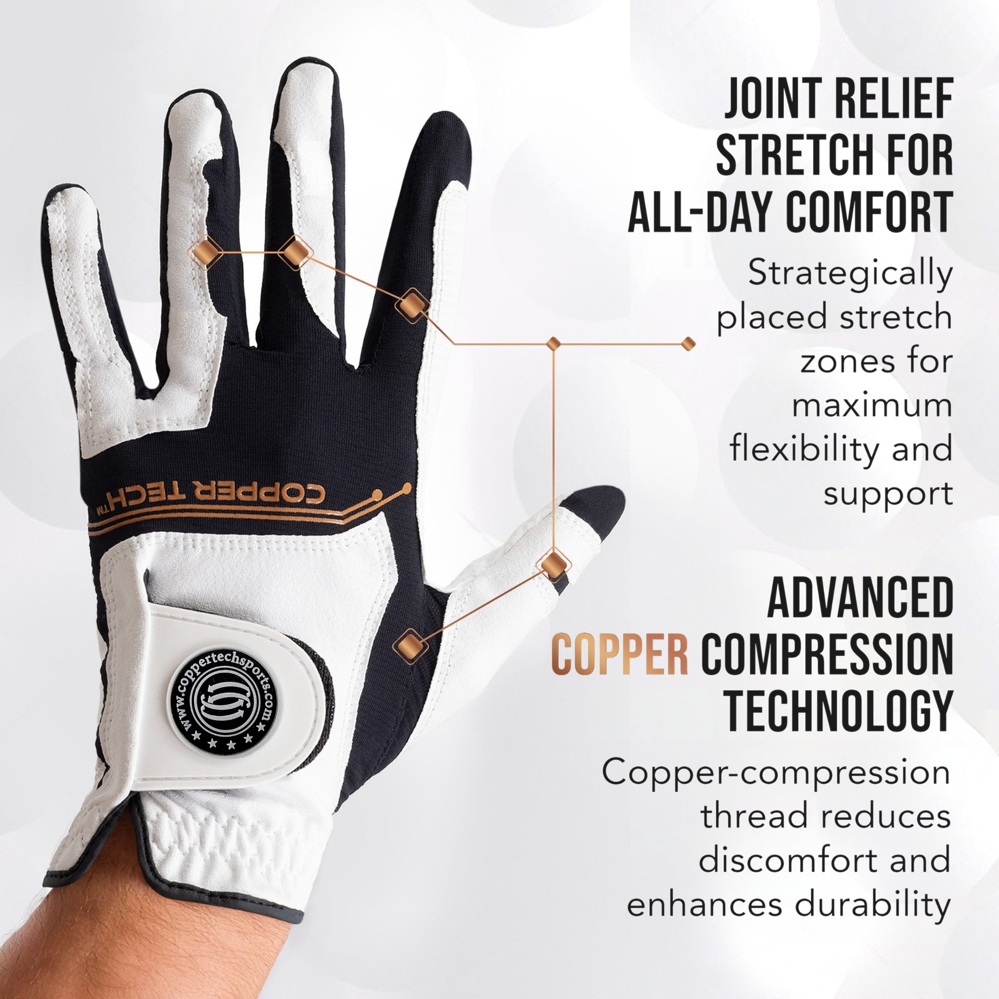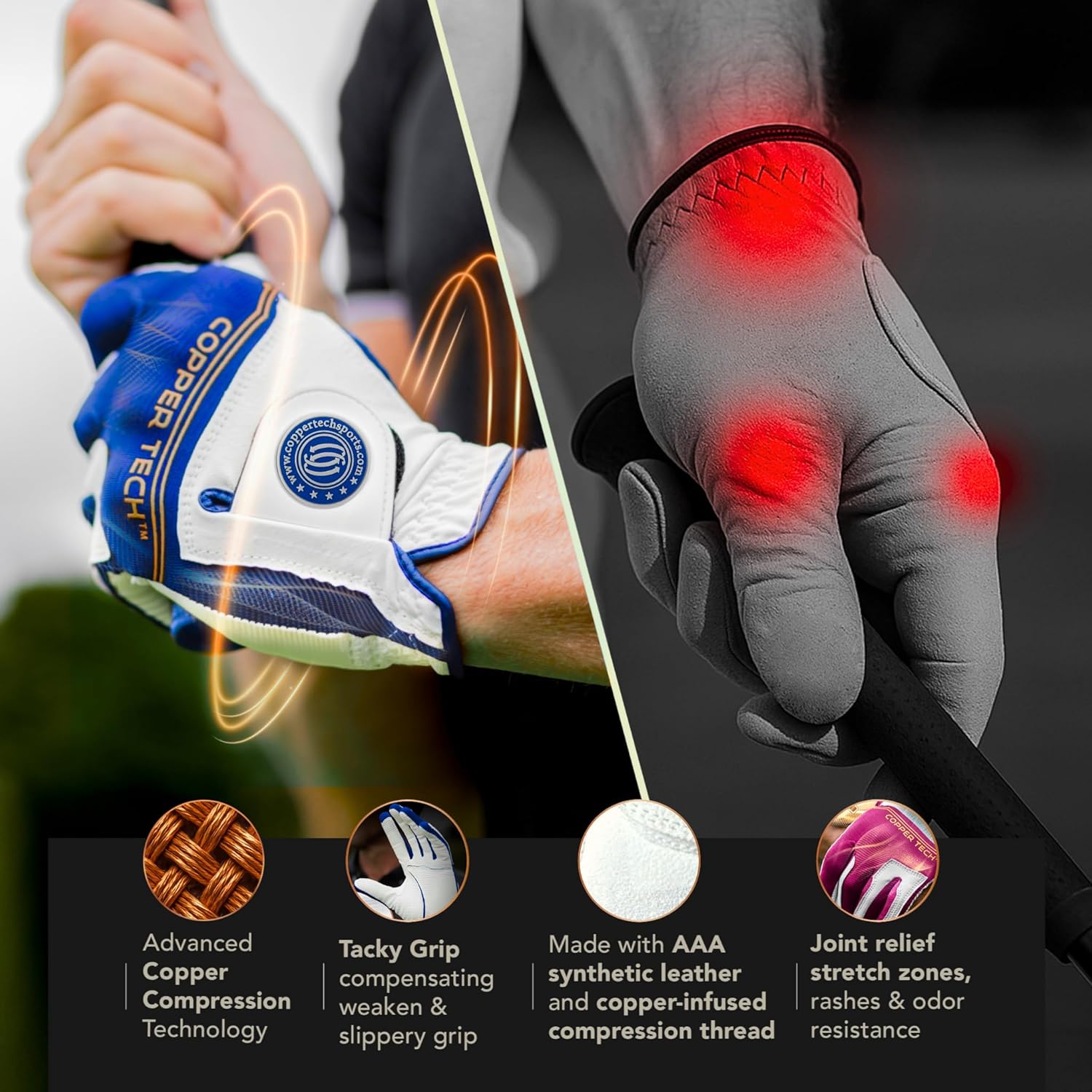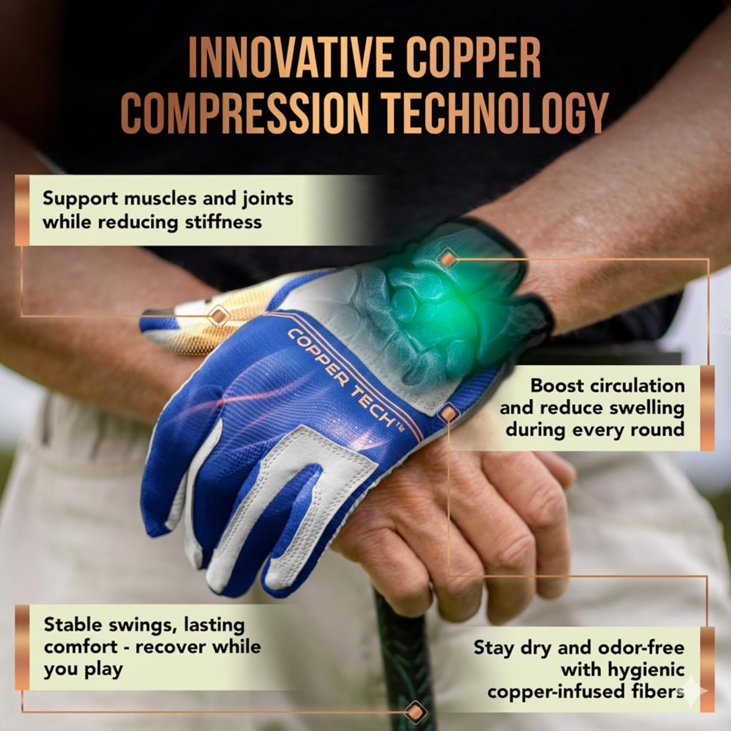 Copper Tech Men's Golf Gloves 2-Pack (White/Black, White/Royal Blue. Charcoal/Gray)