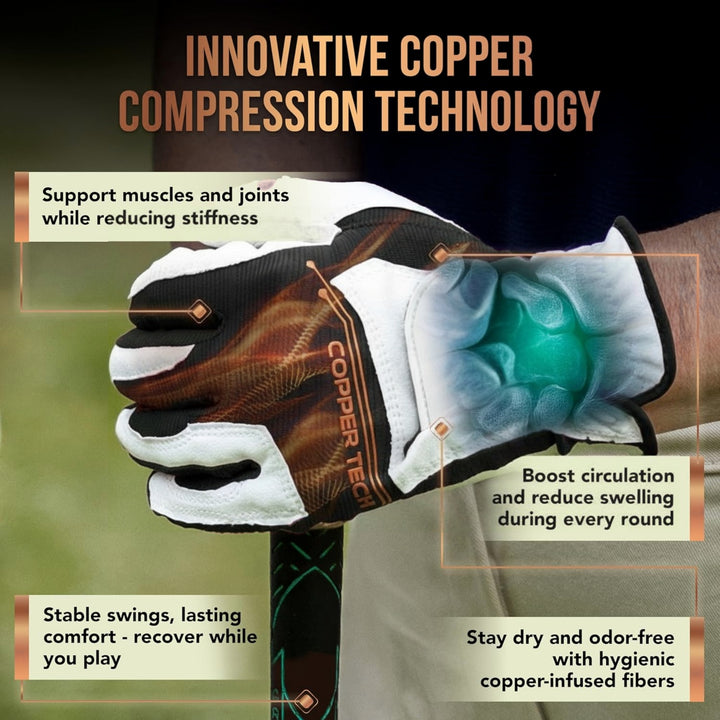 - [Built For Optimal & Comfortable Fit] - With 4-Way stretch construction, our golf glove unites with comfort & flexibility. This copper fabric allow you a full range of motion with a gentle hug on your hand, ensuring high dexterity and performance.