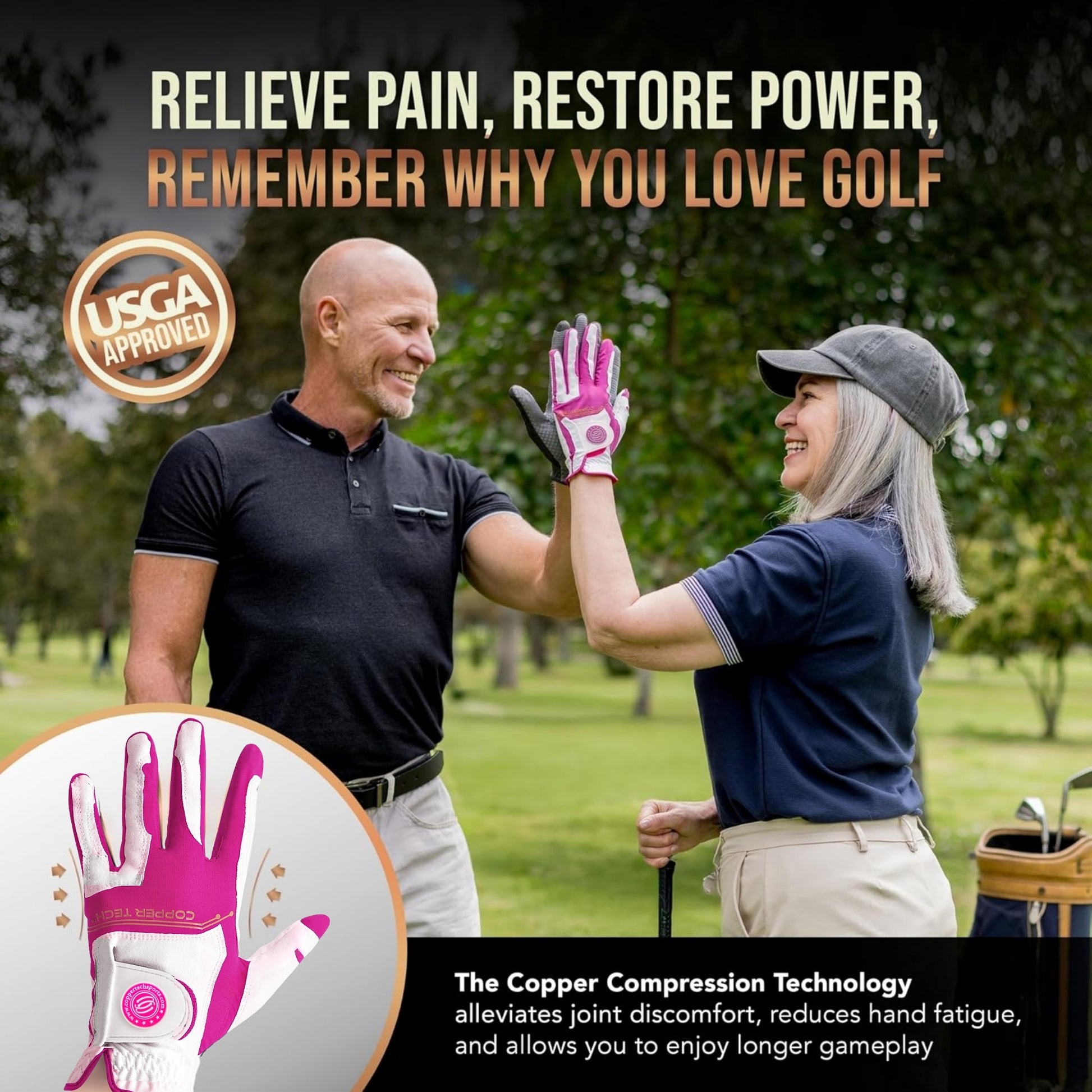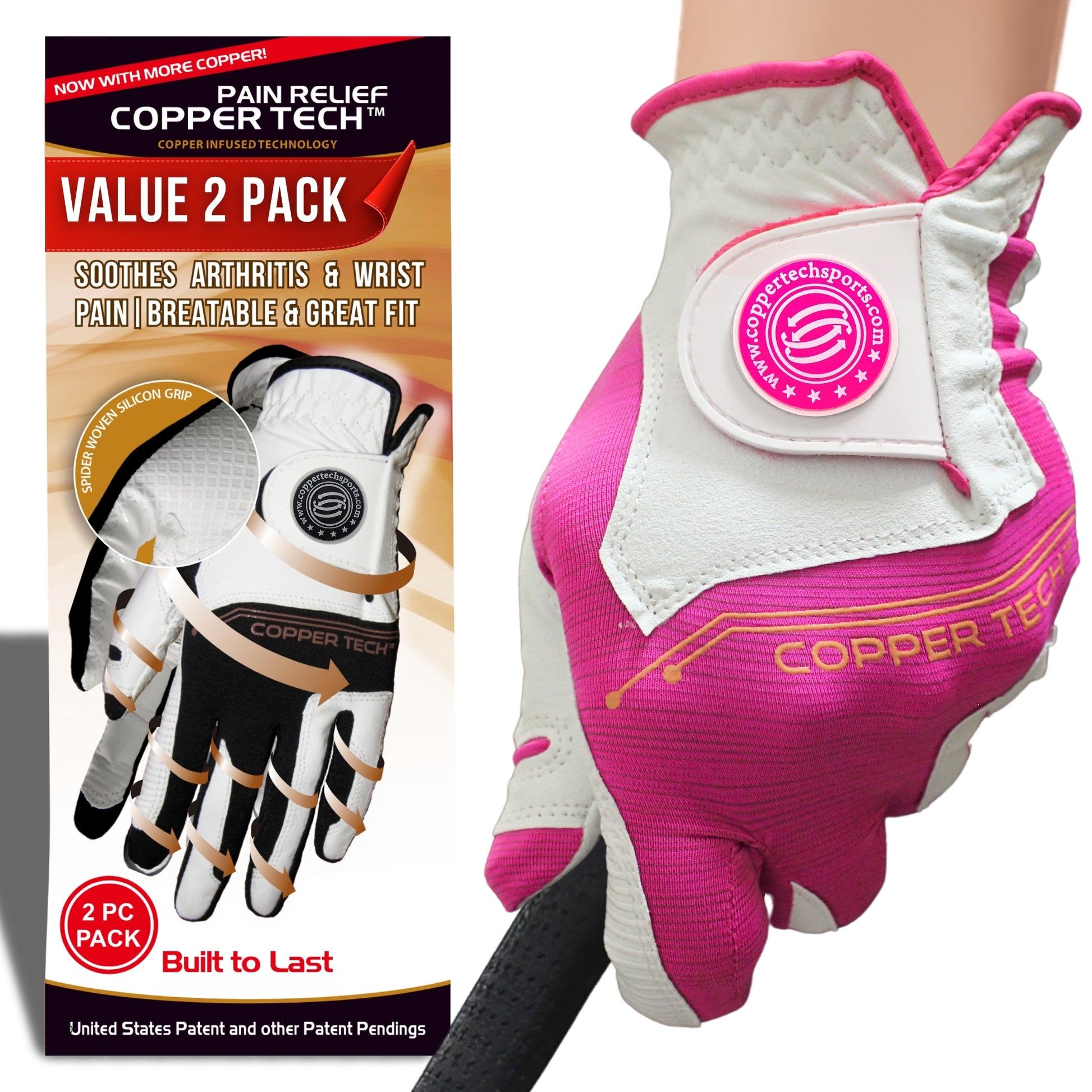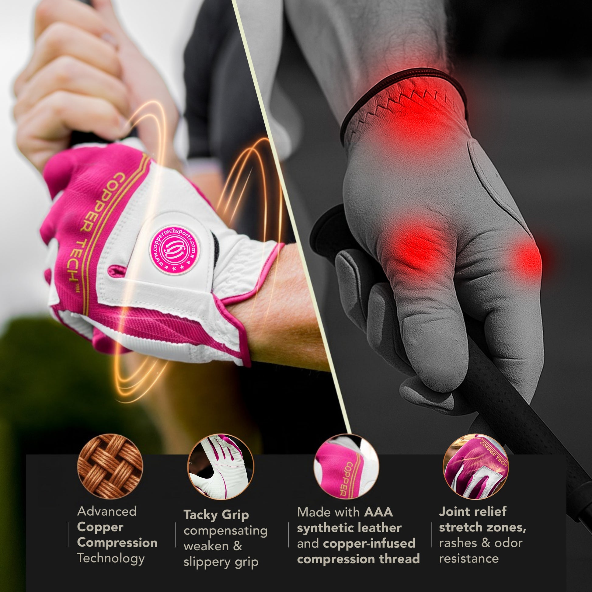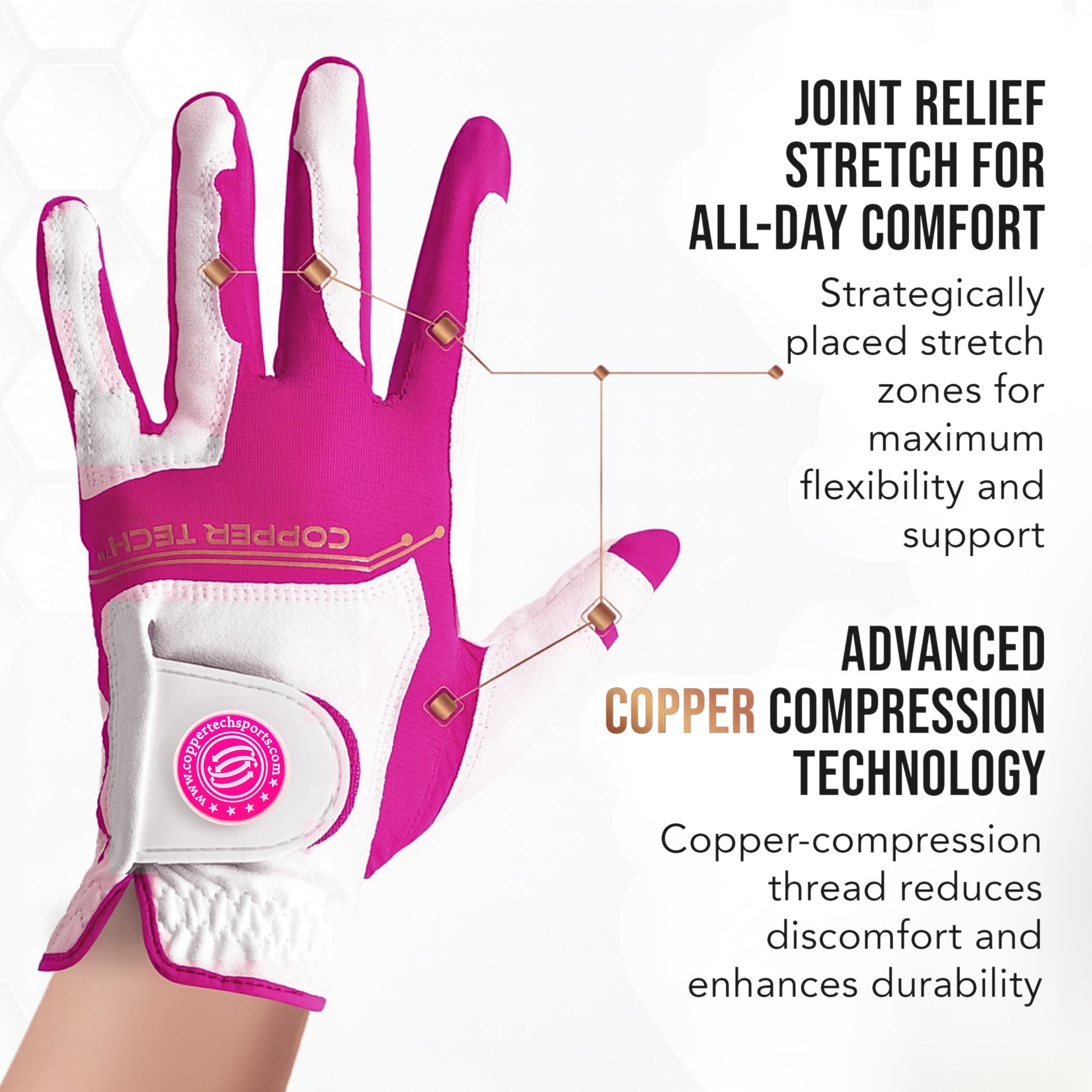 Copper Tech Women Golf Gloves 2 Pack (White/Pink)