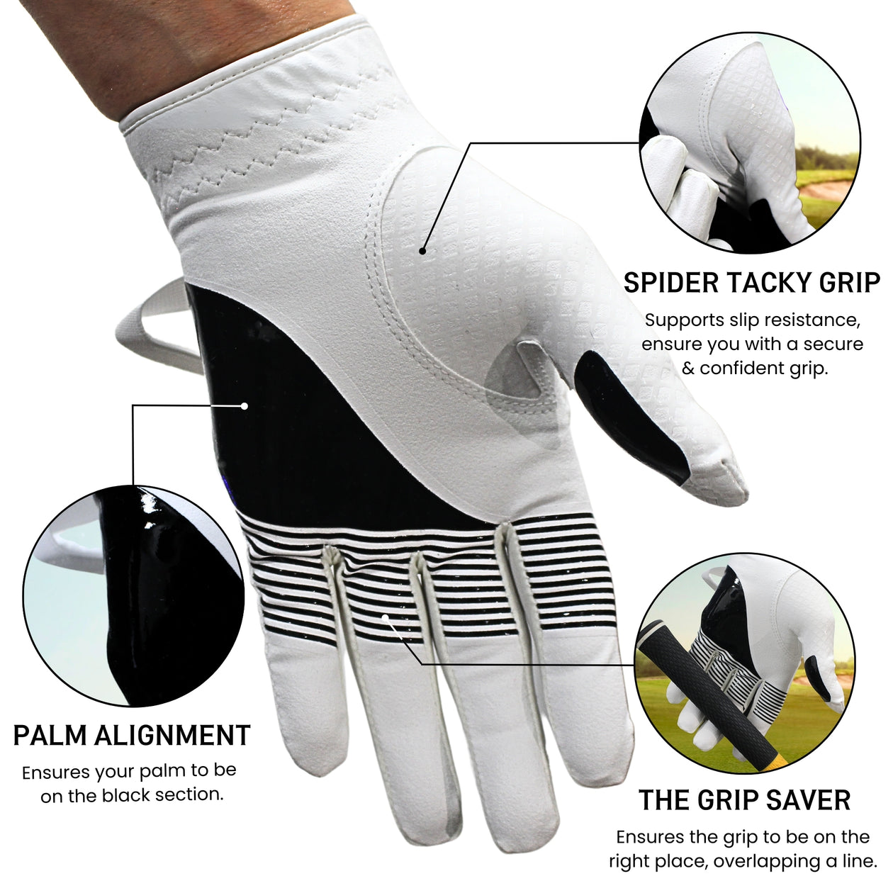 - [THE GRIP SAVER] - Our Golf Grip Trainer Glove keeps your grip in the right place with the black overlapping patterned line, ensuring consistency and control.